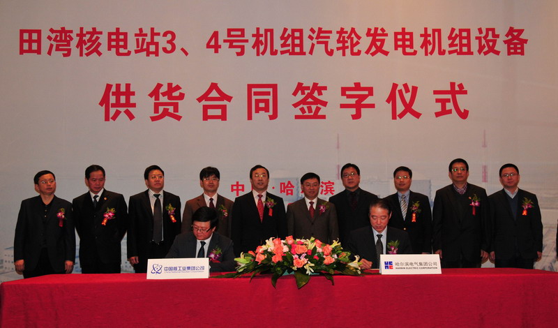 12月27日,哈電股份公司與中核集團(tuán)中國(guó)核電工程有限公司和江蘇核電有限公司舉行了關(guān)于田灣核電3、4號(hào)機(jī)組常規(guī)島T&G包供貨合同的簽字儀式。